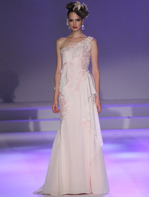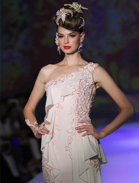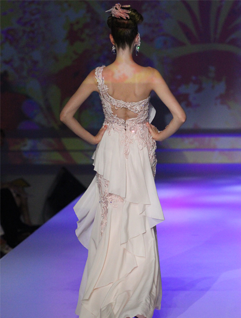 A spectacular dress that conjures illusions with a fluorescent silk produced by genetically engineered silkworms. The fabric glows in a dreamy fluorescent pink when the lights are turned low.