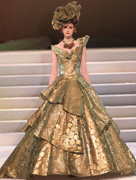 A gorgeous dress with a four-meter-long train embroider …