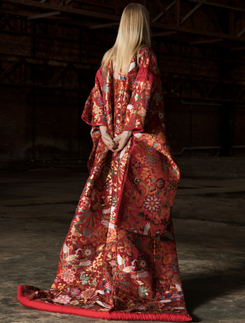 KIMONO-1 Japanese embroidered Uchikake with flower and phoenix – Dark Red If you like this dress; CONTACT US