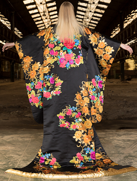 KIMONO KIMONO KIMONO-4 Japanese embroidered Uchikake with flower – Black If you like this dress; CONTACT US
