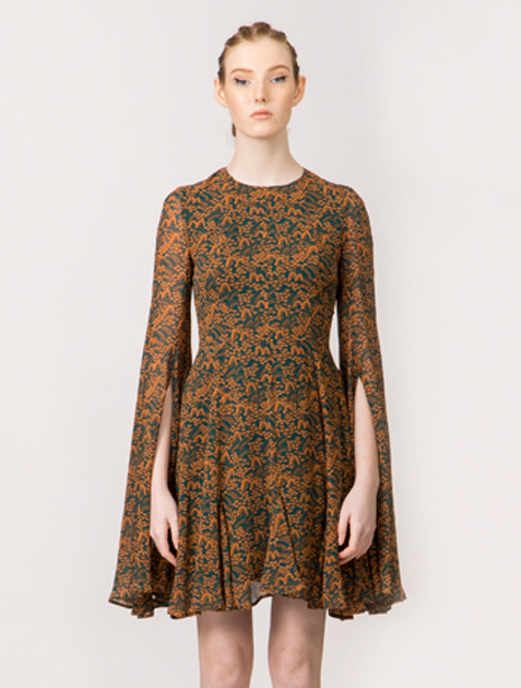 A layered long dress, frilliness and glamorous,inspired by flamenco.
